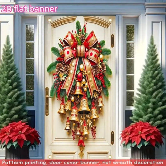 🎄Golden Christmas Bells & Wreath Door Cover - 35.4" x 70.8"